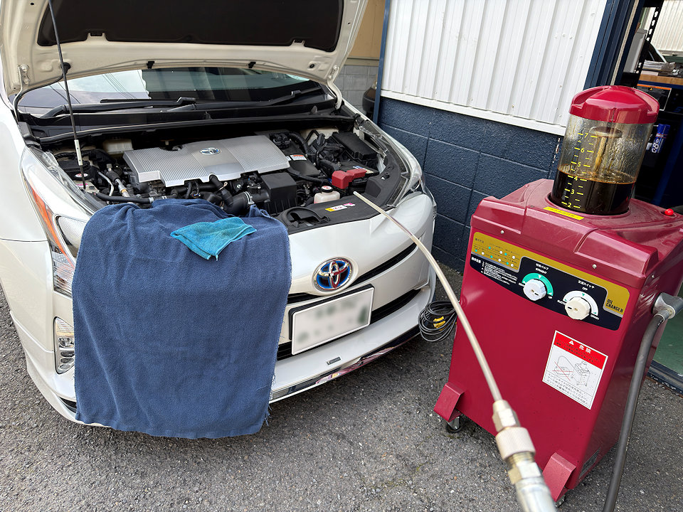 朝から在庫車兼マイカーのプリウスのオイル交換。