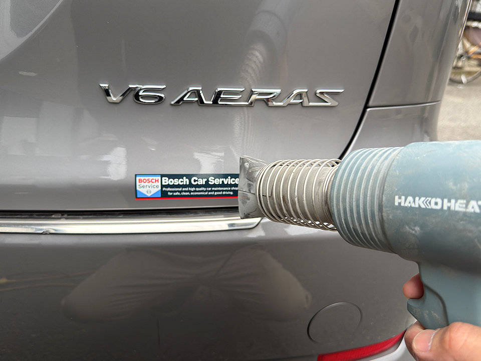 リアゲートのステッカーを剥がしていきます。