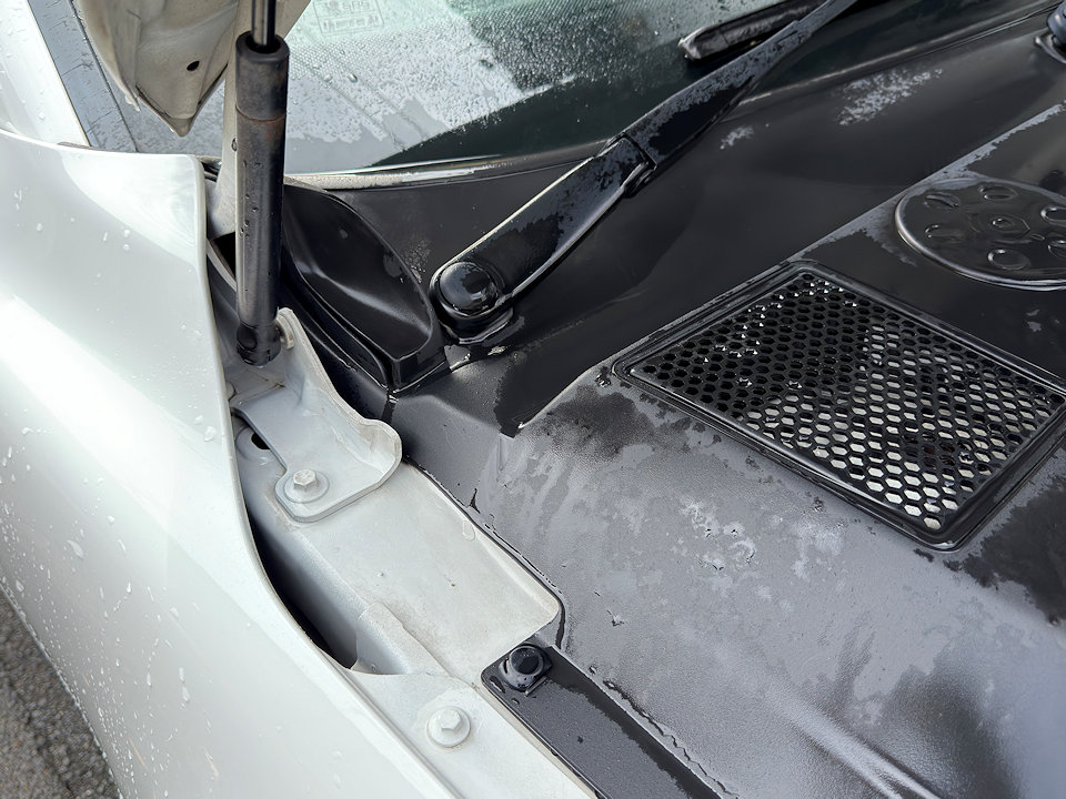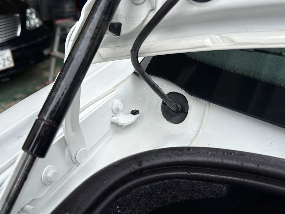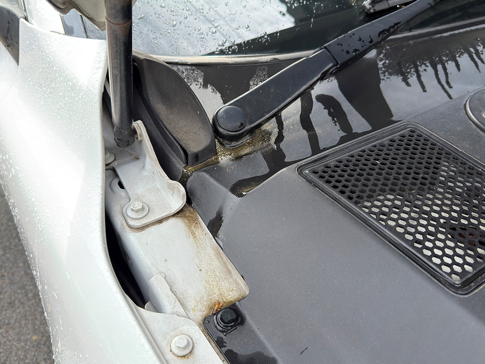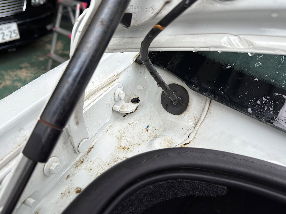ボンネットを開けたところ、ヒンジ部分。